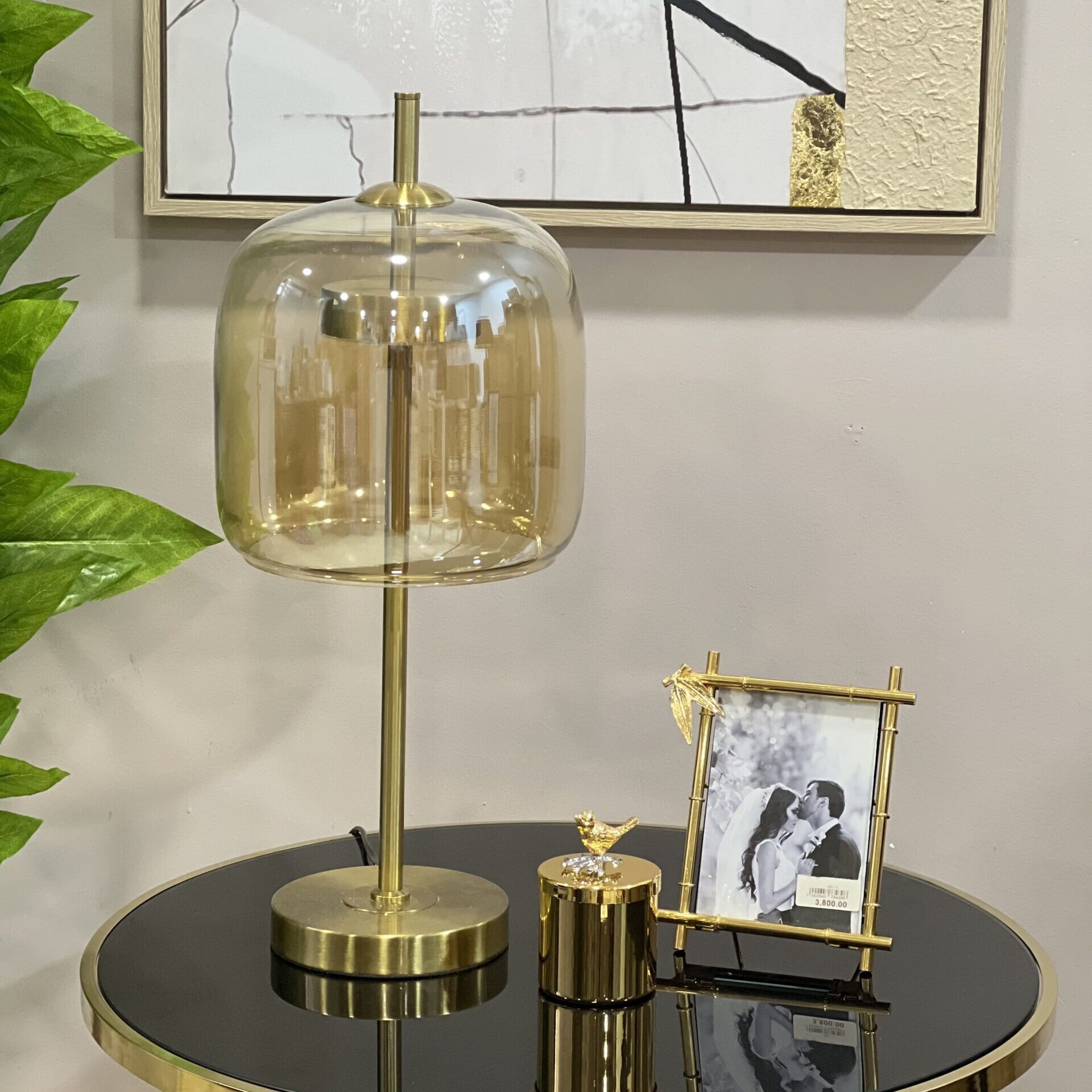 Lampe de salon Jellyfish en verre éclairage LED incorporé structure en inox effet laiton brossée